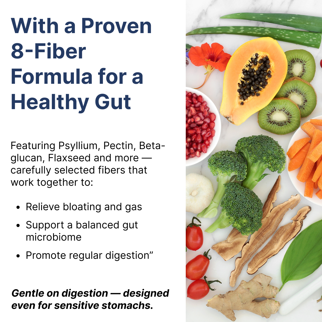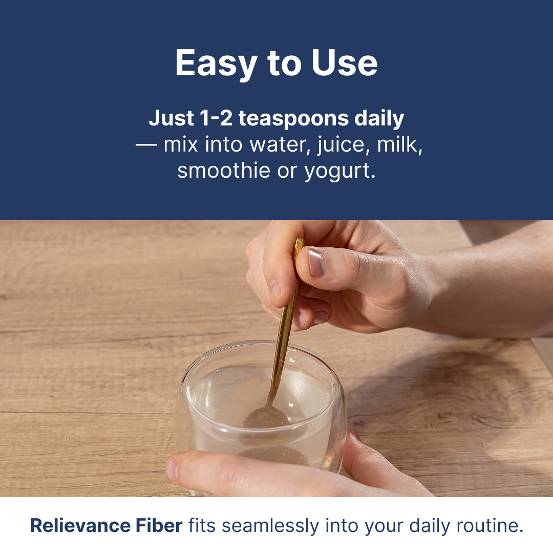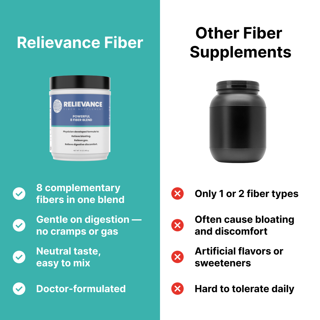 Instead of using a single fiber source, Relievance combines 8 functional fibers selected to support gut bacteria, digestion, and natural regularity.